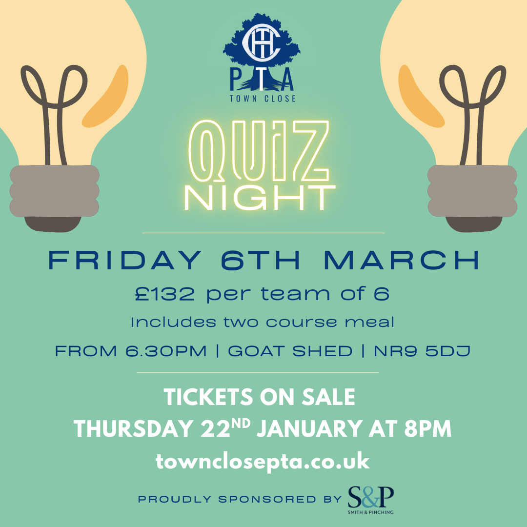 Join us for a brilliant evening of fun, food and friendly competition at the Town Close PTA Quiz Night!